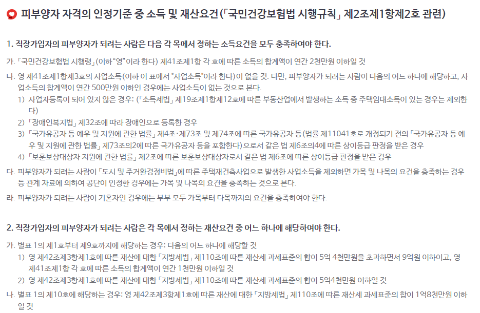 건강보험 피부양자 자격조건 관리